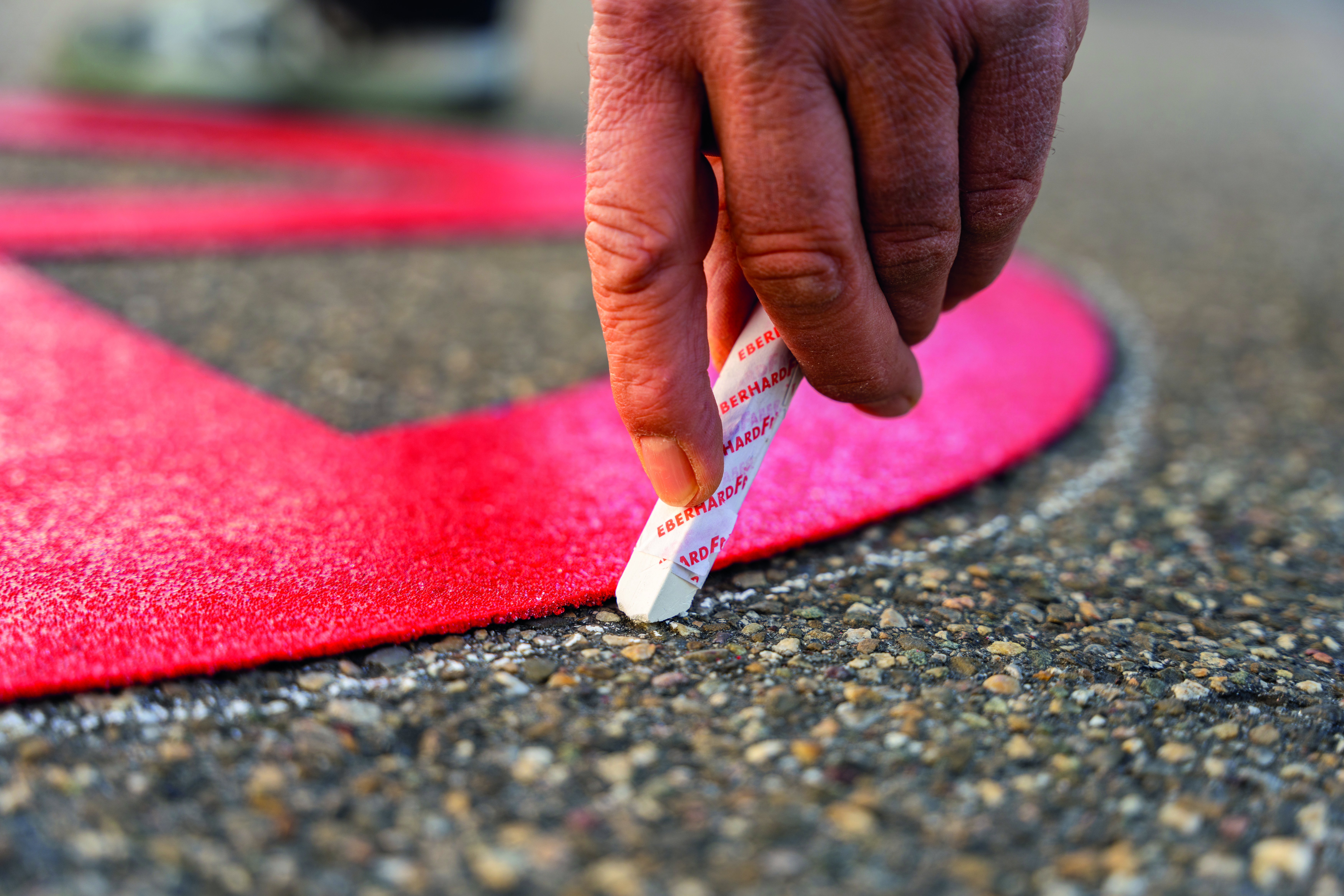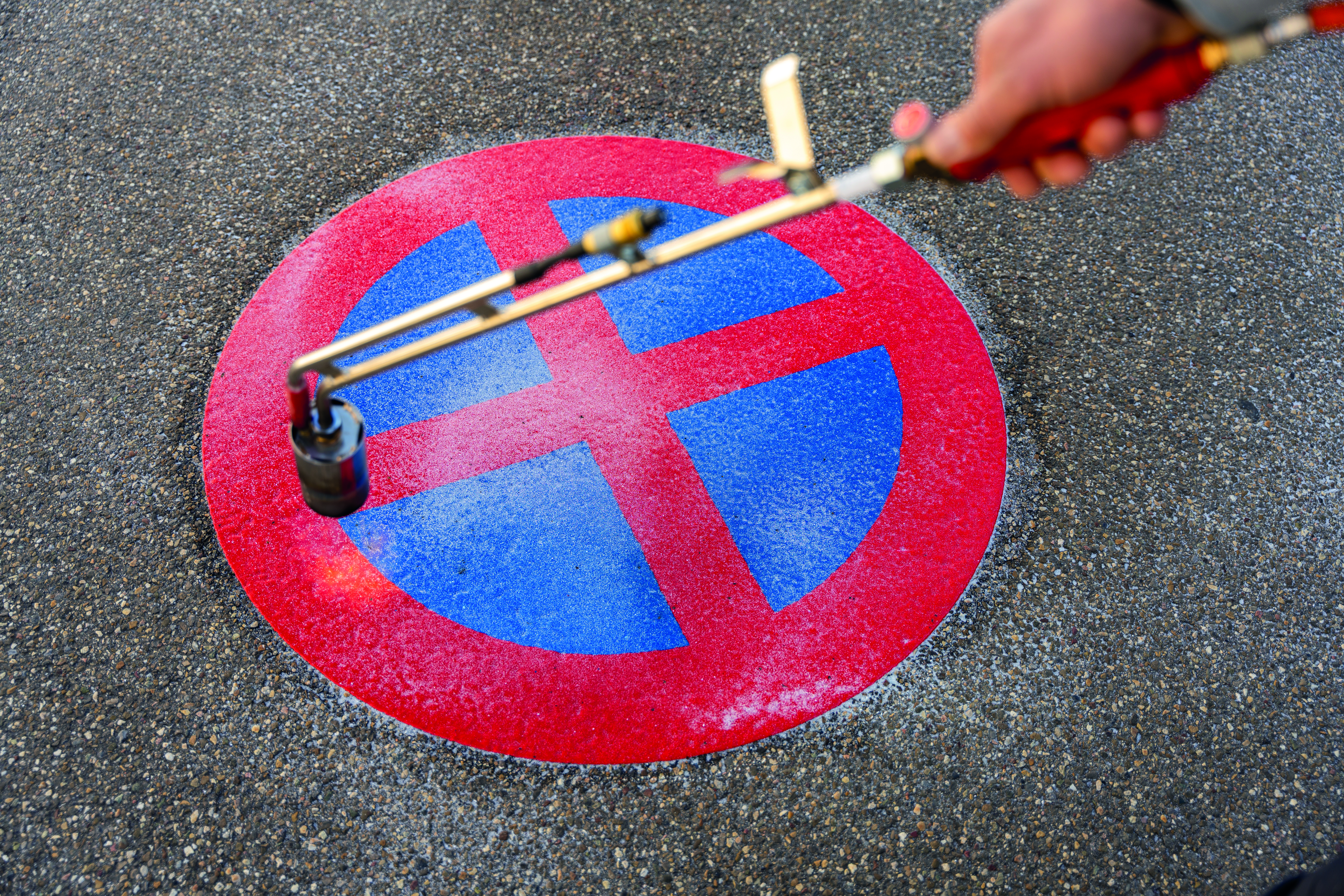 Thermo-Tattoos von Jaeger sind für bituminöse Oberflächen wie Gussasphalt und Asphalt ebenso geeignet wie für Beton- und Zementflächen, etwa auf Straßen, Einfahrten oder Parkplätzen.